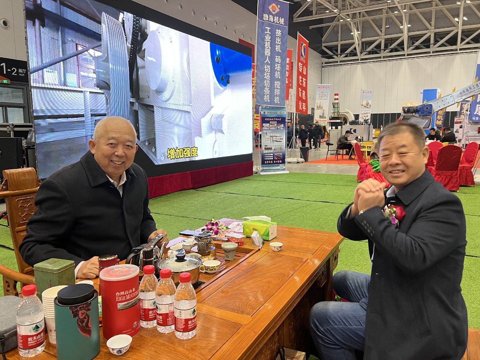 行業(yè)領導來到渤海機械的展廳,和董事長張加祥合影并進行親切交談,對我公司的一直以來的工作予以肯定,希望渤海機械作為磚瓦裝備生產(chǎn)制造的資深企業(yè),再接再厲,繼續(xù)為行業(yè)的發(fā)展做出突出的貢獻。